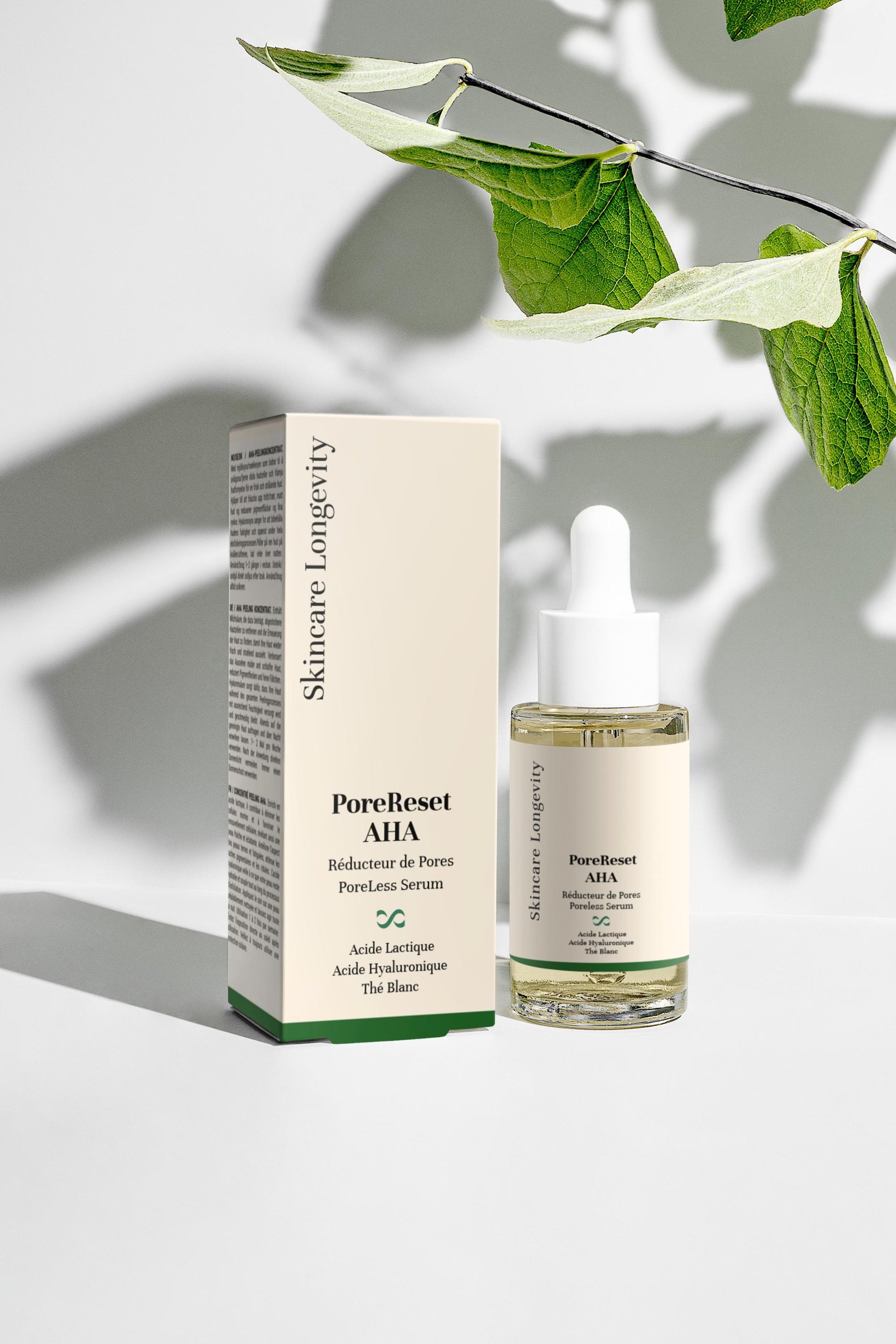 The gentle exfoliating serum with AHA (lactic acid) + antioxidants (white tea) + purifying agents (organic sage) to tighten pores, refine skin texture and smooth the skin surface.