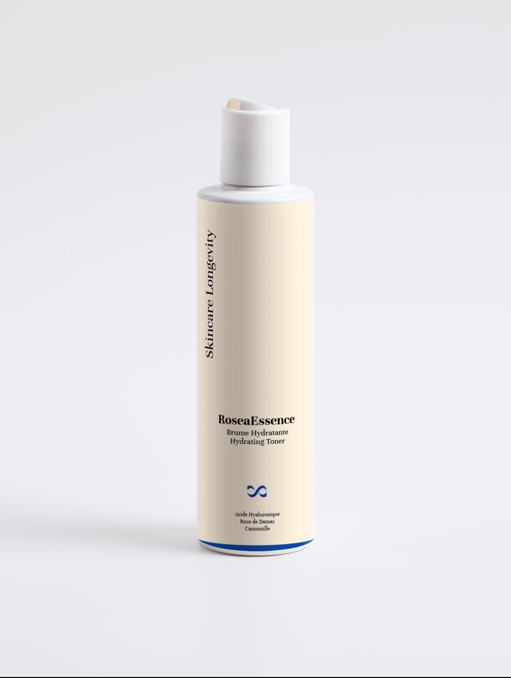 Hydrating essence with rose and hyaluronic acid. Preserves the microbiota, boosts glow, hydrates, and refreshes dull skin.